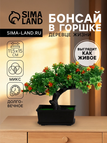 Бонсай искусственный в горшке «Дерево жизни», 11.5×15 см, МИКС