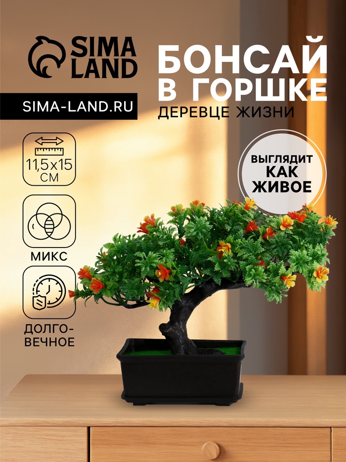 Идеальный акцент для любого стиля: Это дерево бонсай станет смысловым центром на книжной полке, элегантным дополнением рабочего кабинета или умиротворяющим элементом в зоне отдыха. Оно подчеркивает вкус хозяина и создает атмосферу, где царит порядок и равновесие. Подарите себе или близким кусочек вечной природы — миниатюрное «Дерево жизни», которое будет радовать вас годами.