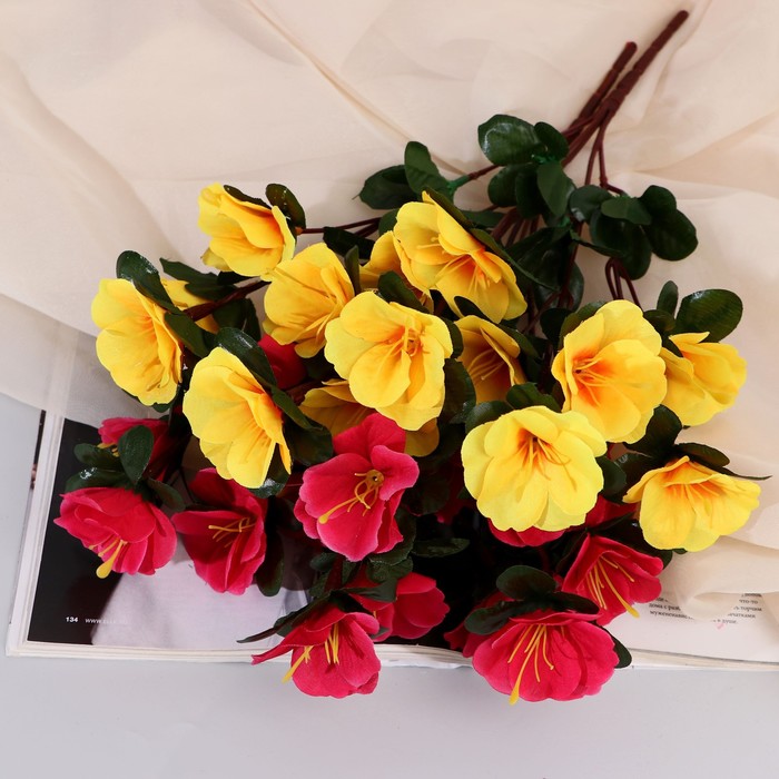 * Цветы выполнены из текстиля, а стебли — из пластика, что обеспечивает долговечность и устойчивость к повреждениям.