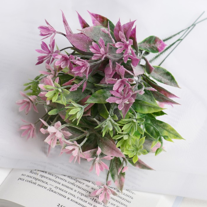 Букет искусственный «Цветочки с листиками», с напылением, h=22 см, МИКС