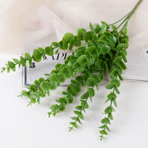 Прекрасный декоративный букет из эвкалипта, выполненный из пластика. Идеально подойдет для украшения вашего интерьера, добавив свежести и стиля. Универсальный элемент декора, который сохранит свежесть и обаяние на протяжении длительного времени. Высота 32 см, цвет - МИКС.
