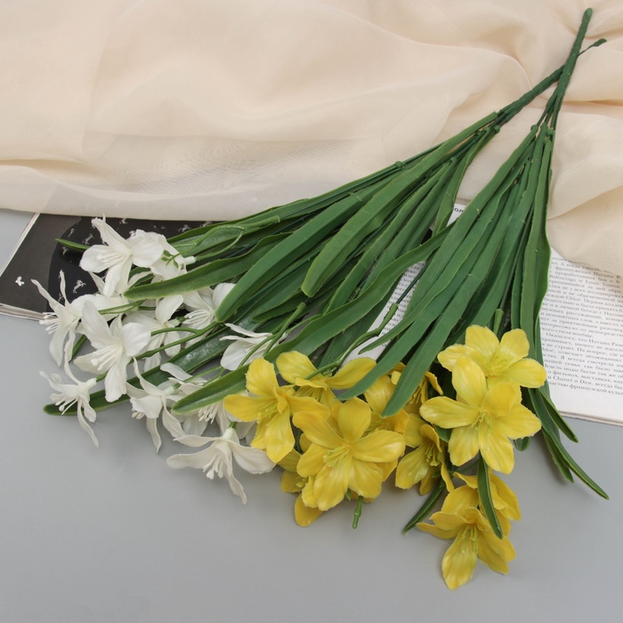 * Стабильная форма: Прочный пластиковый стебель и листья надежно удерживают форму. Композиция не деформируется со временем и не боится солнечных лучей.
