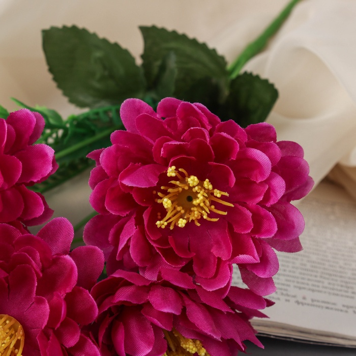 Этот шелковый букет хризантем привносит в интерьер ощущение нежного летнего сада. Его утонченная форма и натуралистичные детали создают живую атмосферу, не требуя ухода.