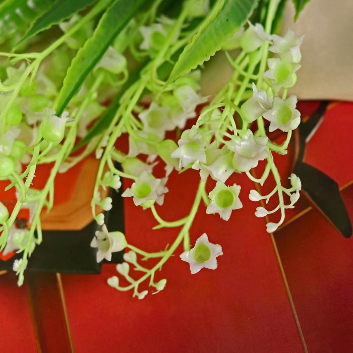 * Реалистичный внешний вид: Белые бутоны и зеленые листья точно имитируют живые ландыши. Композиция сохраняет форму и свежесть, не выгорая на солнце.
