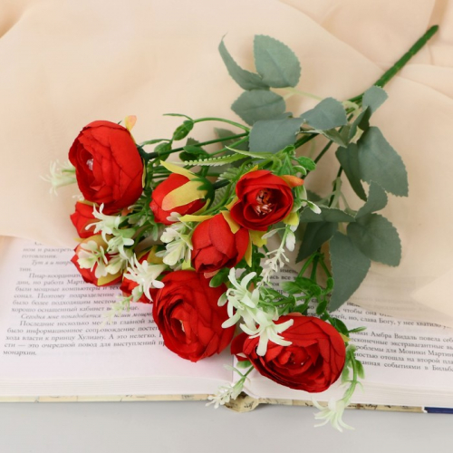 Букет искусственный «Ранункулюс мини с папоротником», 2×30 см, МИКС