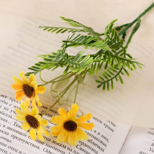 Этот искусственный цветок с натуральными лепестками привносит в интерьер тепло и энергию летнего дня. Компактный размер делает его универсальным решением для украшения стола, полки или создания яркого акцента в небольшом пространстве.