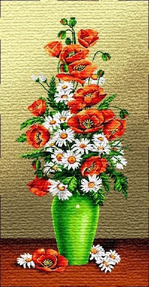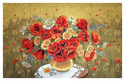 Букет ромашки и маки евро - гобеленовая картина