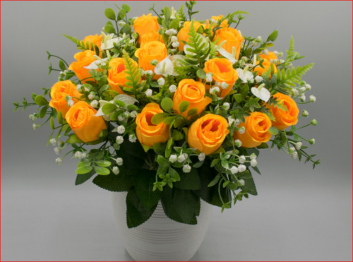 Букет роз в полуроспуске + два вида белых мелких цветочков веточки и разных веточек 50 см. в высоту (19-20 бутонов). 500306448/2