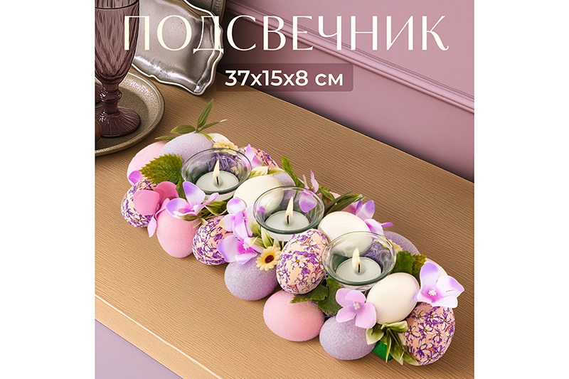 БЫЛО 1251 руб! Пасхальное украшение подсвечник 37*15*8 см "Фиолетовое наслаждение", на 3 свечи