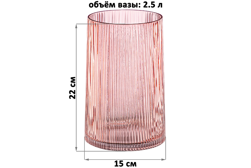БЫЛО 1285 руб! Ваза 15*15*22 см 2,5 л, розовый, стекло