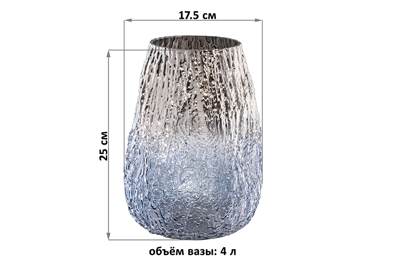 БЫЛО 1420 руб! Ваза 17,5*17,5*25 см 4 л, бежево-синий, стекло