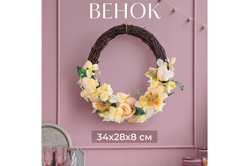 БЫЛО 1438 руб! Пасхальное украшение венок 34*28*8 см "Весеннее цветение"