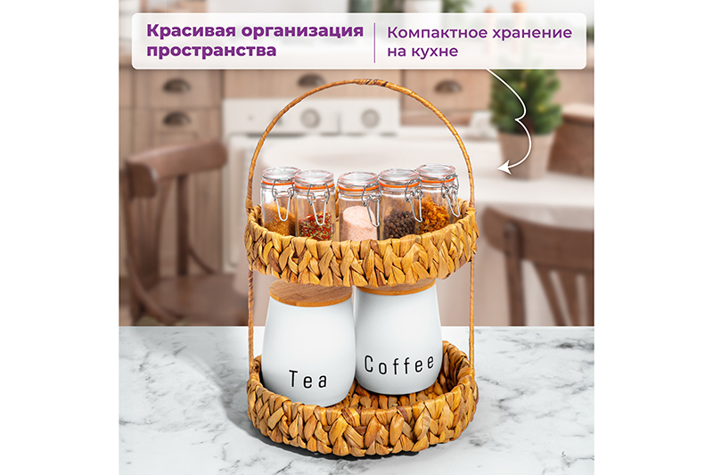 БЫЛО 1663 руб!! Корзинка плетеная 2-х ярусная 25*25*38 см с ручкой, водный гиацинт