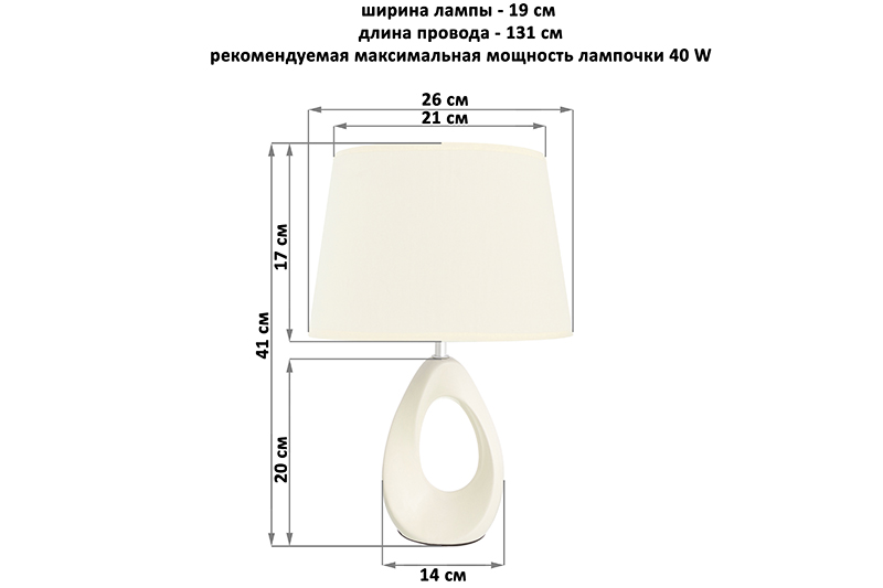 БЫЛО 1770 руб! Настольная лампа 26*19*41 см "Капля" + крем. овал абажур