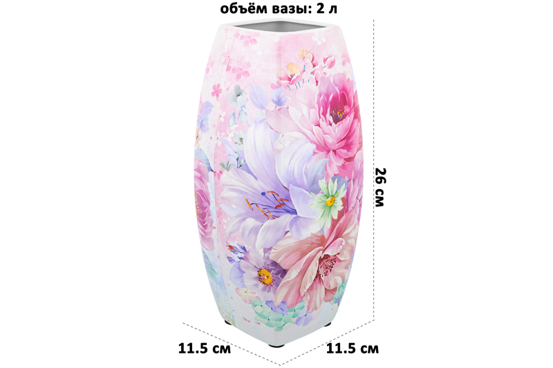 БЫЛО 1854 руб!! Ваза 2,2 л 11,5*11,5*26 см "Акварель" квадрат NEW BONE CHINA