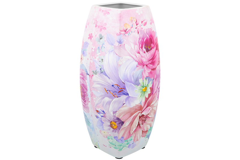 Ваза Elan Gallery "Акварель" размером 11,5х11,5х26 см и объёмом 2,2 литра прямоугольной формы выполнена из высококачественного фарфора нового поколения New Bone China. Благодаря современным технологиям этот вид не уступает традиционному костяному фарфору в прозрачности, белизне и прочности, но при этом гораздо экологичнее в производстве. Вазочка прямоугольной формы устойчива, с обратной стороны дна есть маленькие антискользящие накладки. На вазе изображены ромашки, пионы и лилии в розовых, белых и голубых тонах. Изображение с красивыми цветами напоминает нежный рисунок акварелью. Интерьерная ваза подойдёт для размещения букетов, искусственных цветов или сухоцветов. Стильная вазочка послужит элементом декора для вашего дома. В ней красиво будут смотреться букеты из любых цветов или веточек: роз, тюльпанов, вербы. Интерьерная ваза украсит комнату даже при использовании без наполнения. Эргономичная форма позволит поставить в неё цветы с длинными стеблями. Разместите декоративную вазу на столе или полке, чтобы создать в комнате стильный акцент. Большая настольная ваза поставляется в прочной подарочной упаковке. Станет шикарным подарком вашим близким: маме, бабушке, сестре или подруге на любой праздник. Красивая ваза с рисунком в розовых, белых и голубых тонах станет украшением вашего дома и подчеркнёт красоту любого цветка!