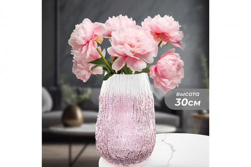 БЫЛО 1886 руб! Ваза 20*20*30 см 6 л, бело-бордовый, стекло