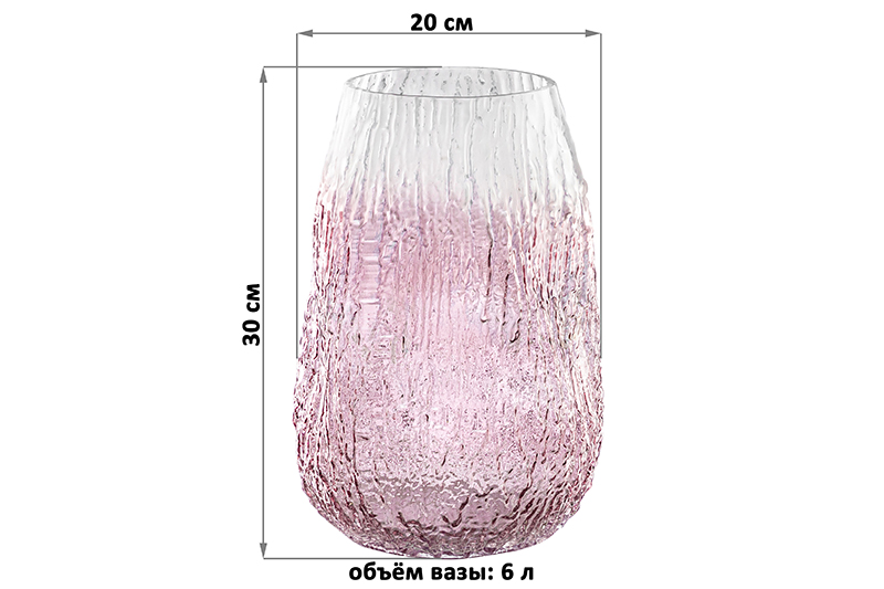 Ваза ручной выдувки размером 20х20х30 см и объёмом 6 литров выполнена из прочного бело-бордового стекла. Высокая вазочка подойдёт для размещения живых и искусственных цветов, сухоцветов и веточек. Её широкое горлышко вместит даже пышный букет или цветочную композицию. Полупрозрачная ваза имеет бордовый цвет и матовое белое горлышко, а её рельефная поверхность имитирует древесную кору. Благодаря оригинальной ассиметричной форме она идеально дополнит интерьер вашей квартиры и украсит любую комнату. Несмотря на асимметричность, ваза устойчива благодаря широкому дну. Её можно разместить в гостиной, на кухне или в прихожей. Декоративная ваза поможет создать в доме праздничную атмосферу. Не рекомендуется применять абразивные моющие средства. Поставляется в прочной картонной коробке. Такая ваза станет идеальным подарком для каждой женщины!