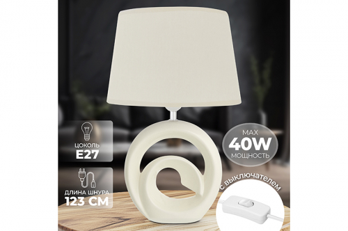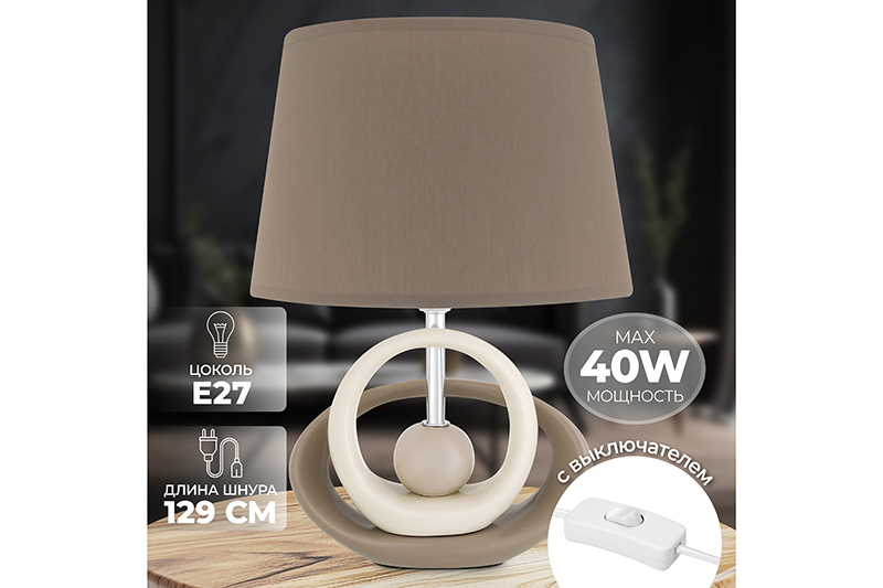 Настольная лампа с абажуром "Бесконечность" от Elan Gallery — это не только дополнительный источник света, но и стильное украшение интерьера спальни или гостиной. Размер – 26х19х36,5 см. Цоколь Е27. Фигурное основание выполнено из керамики. Размеры абажура: верхняя часть 21х14,5 см, нижняя часть 26х19 см, высота 17 см. Рекомендуется использовать лампочку мощностью не более 40 W (в комплект не входит). Работает от сети, необходимо наличие розетки. Выключатель расположен на проводе длиной 129 см. Декоративный светильник поможет создать уютную атмосферу в комнате или на кухне. Он подходит для использования в качестве ночника, а также прикроватного светильника. Станет отличным предметом декора для вашего комода или журнального столика. Прекрасно впишется в интерьер детской комнаты, создавая уютную атмосферу для школьника. Можно поставить на туалетный столик возле кровати для спокойного чтения книг перед сном. На даче ночной светильник поможет создать приятную атмосферу на террасе или в доме. Поставьте красивую лампу на стол или тумбочку, чтобы организовать дополнительную подсветку в любом пространстве. Настольная лампа станет приятным подарком на любой праздник как взрослым, так и детям. Не рекомендуется использовать абразивные моющие средства. Светильник с керамическим основанием — это не просто источник освещения, он украсит интерьер вашего дома и поможет создать уютную атмосферу! В ассортименте Elan Gallery представлено много товаров и предметов декора, которые позволят создать уголок гармонии для комфортного отдыха дома.