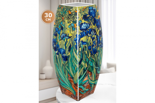 Настольная ваза Elan Gallery "Ирисы" размером 12,5х12,5х30 см и объёмом 3 литра прямоугольной формы выполнена из фарфора нового поколения new bone china. Благодаря современным технологиям этот вид не уступает традиционному костяному фарфору в прочности, но гораздо экологичнее в производстве. В коллекции бренда Elan Gallery можно найти много красивой посуды и предметов декора с изображениями по мотивам шедевров мировой живописи! Высокая вазочка украшена репродукцией картины известного художника Ван Гога. Яркий и узнаваемый сюжет на фарфоровом изделии удачно впишется в любой стиль интерьера, добавляя красоты и романтики. Интерьерная ваза подойдёт для размещения букетов, искусственных цветов или сухоцветов. Она послужит элементом декора вашего дома и поможет украсить его любыми растениями. Как красиво будут смотреться букеты из живых цветов и веточек на кухне и в любой комнате! Поставьте на видное место розы, тюльпаны или вербу для оформления интерьера в квартире. Интерьерная ваза украсит комнату даже без наполнения и подойдёт для создания декоративных композиций на журнальном столике или полке. Эргономичная форма позволит поставить в неё цветы с длинными стеблями. Не рекомендуется применять абразивные моющие средства. Поставляется в прочной красочной коробке. Станет шикарным подарком вашим близким на любой праздник. Благодаря стильной коробочке вам не понадобится дополнительная подарочная упаковка. Сделайте сюрприз ценителям искусства! Красивая фарфоровая ваза с рисунком станет украшением вашего дома и подчеркнёт красоту любого цветка. Ознакомьтесь с другими товарами для дома от Elan Gallery, здесь вы найдёте всё для создания домашнего уюта!