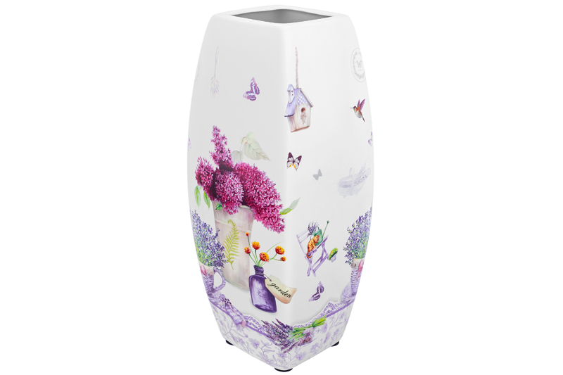 Настольная ваза Elan Gallery "Лаванда" размером 12,5х12,5х30 см и объёмом 3 литра прямоугольной формы выполнена из фарфора нового поколения new bone china. New bone china сочетает в себе изящность и высокую прочность. От других видов костяного фарфора материал отличается большей экологичностью в производстве. Вазочка имеет маленькие антискользящие накладки с обратной стороны дна для устойчивости на гладкой поверхности. Серия "Лаванда" украшена нежным принтом на тему Прованса – французской провинции, которая славится своими лавандовыми полями и красивыми пейзажами. Изображение пышных букетов лаванды и гортензии позволит окунуться в атмосферу тепла, гармонии и южного солнца, не покидая вашего дома! Высокая вазочка удачно впишется в любой стиль интерьера, добавляя красоты и романтики. Интерьерная ваза подойдёт для размещения букетов, искусственных цветов или сухоцветов. Она послужит элементом декора вашего дома и поможет украсить его любыми растениями. Как красиво будут смотреться букеты из живых цветов и веточек на кухне и в любой комнате! Поставьте на видное место розы, тюльпаны или вербу для оформления интерьера в квартире. Интерьерная ваза украсит комнату даже без наполнения и подойдёт для создания декоративных композиций на журнальном столике или полке. Эргономичная форма позволит поставить в неё цветы с длинными стеблями. Не рекомендуется применять абразивные моющие средства. Поставляется в прочной красочной коробке. Станет шикарным подарком вашим близким на любой праздник. Благодаря стильной коробочке не понадобится подарочная упаковка. Красивая фарфоровая ваза с рисунком станет украшением вашего дома и подчеркнёт красоту любого цветка. Ознакомьтесь с другими товарами для дома от Elan Gallery, здесь вы найдёте всё для создания домашнего уюта!