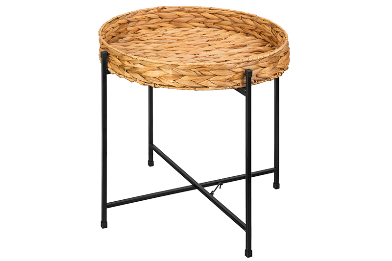 Складной журнальный столик 50х50х51 см от бренда ELCASA добавит природной гармонии домашнему интерьеру и позволит создать уютный уголок в квартире или на даче. Подойдёт в роли кофейного, балконного или для украшения любого пространства в доме. Размер столешницы 47х47х7 см, её внутренний диаметр – 42 см. Поверхность стола представляет собой прочное плетение из сушёных стеблей и листьев водного гиацинта. Это экологичный материал, устойчивый к выгоранию на солнце. Ножки выполнены из металла с пудровым покрытием. Благодаря прочному металлическому каркасу мебель имеет надежную конструкцию и выдерживает нагрузку до 15 кг. Столешница круглой формы съёмная, её можно использовать отдельно как сервировочный поднос для подачи чая, кофе или создания интерьерных композиций в комнате или на кухне. Она имеет бортики, что позволяет устойчиво разместить посуду, книги и любые другие предметы. Металлическую подставку можно компактно хранить за счёт складного механизма, если чайный столик не используется. При необходимости просто достаньте раскладной стол из шкафа, чтобы поставить на террасу, балкон или использовать как прикроватный для подачи завтрака в постель. Можно использовать в гостиной как приставной к дивану, разместив на нём напитки и закуски при просмотре фильма. В спальне подойдёт в качестве тумбы или туалетного столика под различные мелочи, косметику и предметы декора. Не рекомендуется применять абразивные моющие средства. Станет приятным подарком на любой праздник. Поставляется в красочной картонной коробке, поэтому не понадобится дополнительная подарочная упаковка, если вы решите сделать сюрприз своим близким. В коллекции бренда ELCASA представлено много товаров для дома со стильным дизайном, а также кухонного инвентаря и декоративных украшений. Добавьте природной эстетики домашнему интерьеру и используйте каждый сантиметр пространства с пользой!