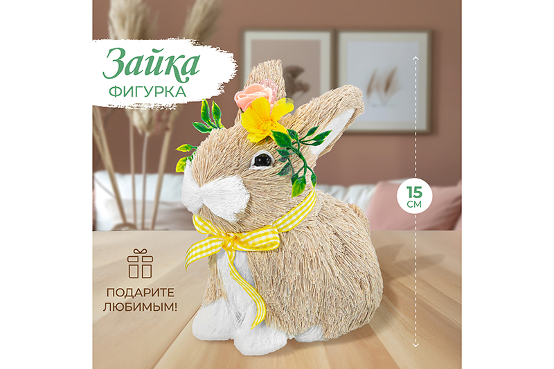 Украшение «Зайка» от Elan Gallery станет оригинальным дополнением вашего интерьера. Размер изделия – 13х8,5х15,5 см. Представляет собой милую сидящую зайку с клетчатым жёлто-зелёным бантиком на шее и пёстрым цветочным ободком на макушке. Шёрстка выполнена из хлопчатобумажной нити. Настольная фигурка украсит интерьер гостиной или спальни и создаст тёплую атмосферу. Превратите вашу кухню или дачу в уютное место благодаря этому сувениру! Вы можете разместить игрушку на полке, тумбочке или рабочем столе, задействуйте в композиции с декоративными веточками и растениями или другими фигурками. Посадите зайку в плетёную корзинку и повесьте её на стенку, дверь или шкаф. Необычный элемент декора найдёт место в любой части вашей квартиры: в прихожей, гостиной, столовой или спальне. Это изящный и лёгкий способ добавить эстетики любому помещению. В коллекции бренда Элан Галерея вы найдёте множество как ярких, так и нежных декоративных украшений – каждый обязательно подберёт сувенир на свой вкус. Они станут чудесным подарком для родных, близких и коллег. Наполните пространство вокруг себя радостью!