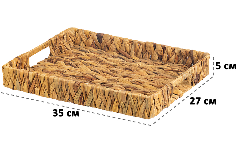 БЫЛО 777 руб! Корзинка - поднос плетеная 35*27*5 см с ручками, водный гиацинт