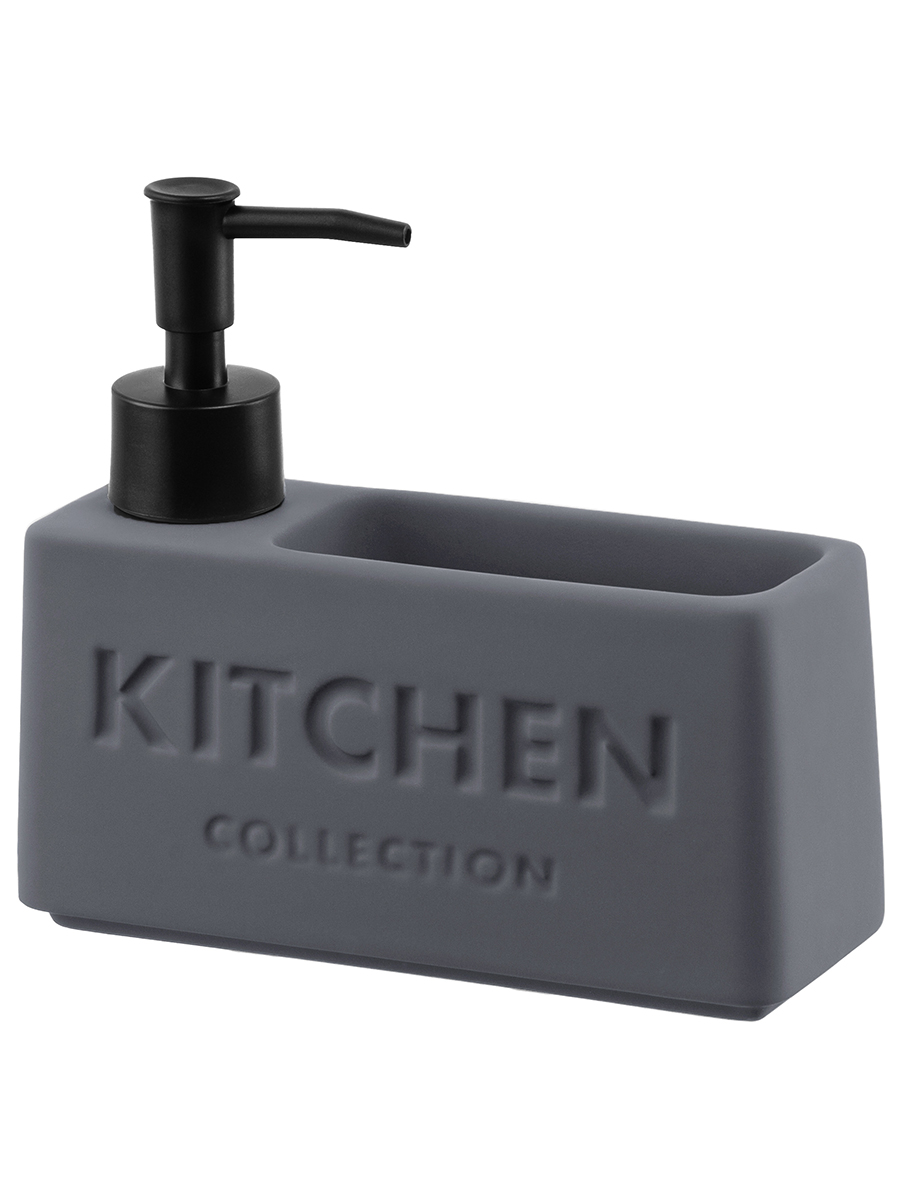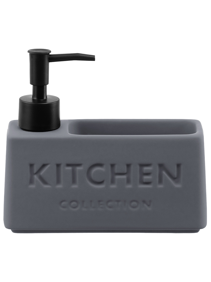 Настольный диспенсер подойдёт для хранения жидких моющих и очищающих средств. Размер изделия – 16,5х5,5х14,5 см, объём – 420 мл. Баночка выполнена из керамики, её поверхность имеет матовый финиш и украшена надписью «Kitchen Collection» («Коллекция для кухни»). Пластиковый дозатор поможет удобно извлечь необходимое количество средства. Стильный аксессуар дополнит вашу кухню, а лаконичный дизайн впишет его в интерьер любой квартиры! Заполните ёмкость жидким мылом или средством для посуды и расположите на кухонной раковине. Герметичная бутылочка не допустит проливаний. Имеется отделение для губки – вы сможете хранить под рукой всё необходимое для мытья посуды. Закруглённое донышко позволит вам легко избавиться от жидкости, которая скопилась от губки. Не рекомендуется применять абразивные моющие средства. Не подходит для использования в посудомоечной машине. Для очистки изделия пользуйтесь тёплой водой с добавлением моющего средства. Поставляется в стильной картонной коробке – вам не потребуется дополнительная подарочная упаковка. Декоративный диспенсер станет отличным подарком для родных и близких. Это не только практичное, но и эстетичное решение для организации чистоты и порядка в вашем доме.