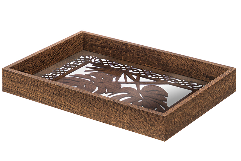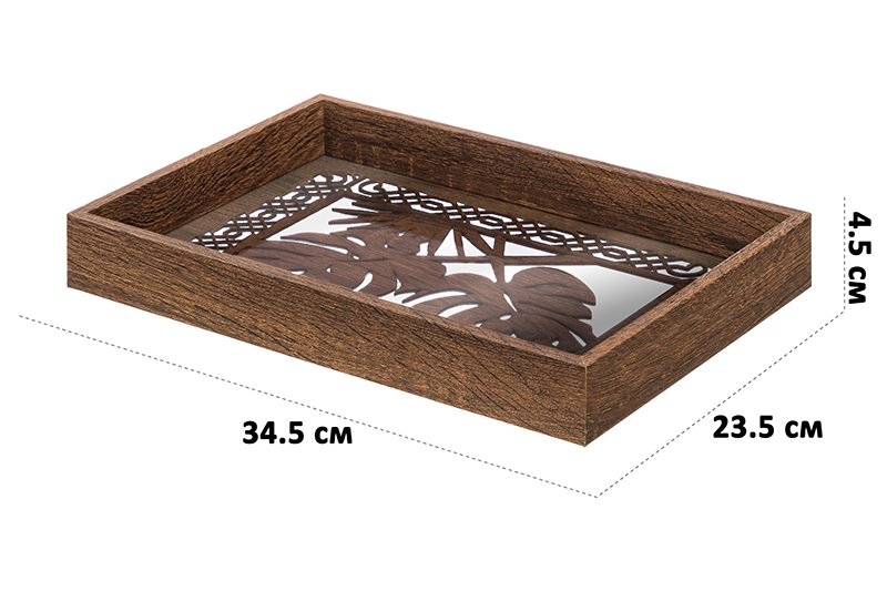 Прямоугольный поднос от бренда Elan Gallery "Листья" размером 34,5х23,5х4,5 см выполнен из прозрачного стекла. Декоративные элементы в виде резных узоров коричневого цвета выполнены из МДФ. Изделие подойдет для подачи блюд в разные комнаты и сервировки обеденного стола, а также украшения интерьера декоративными композициями. В спальне на подносе можно хранить косметику или журналы, поставив его на стол. Проведите уютный вечер на веранде с вином и фруктами, чайную церемонию с друзьями или устройте завтрак в постель. Поднос можно использовать как подставку для предметов декора. Создавайте красивые декоративные композиции со свечами, цветами и интерьерными аксессуарами. Многофункциональный поднос можно использовать для организации хранения. Разместите на кухне чай, кофе, специи и различную утварь. В спальне подойдёт для парфюмерии и косметических принадлежностей, а в прихожей под любые мелочи. Запрещено использовать в качестве подставки для раскаленных сковород, кастрюль, противней. Не рекомендуется применять абразивные моющие средства. Станет оригинальным подарком для любителей эстетичных вещей на любой праздник. В коллекции бренда Элан Галерея представлено много красивой посуды и стильных товаров для дома, выберите варианты на свой вкус!