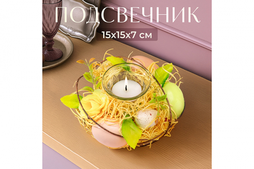 БЫЛО 897 руб! Пасхальное украшение подсвечник 15*15*7 см "Весеннее цветение" на 1 свечу