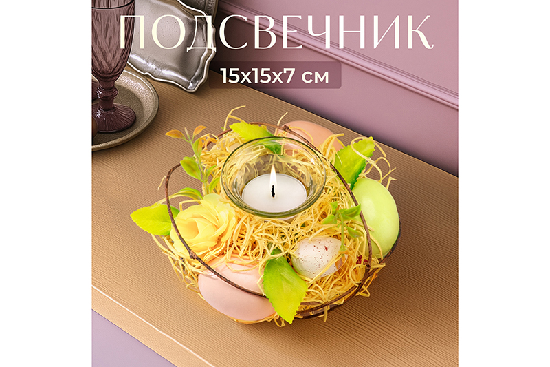 БЫЛО 897 руб! Пасхальное украшение подсвечник 15*15*7 см "Воздушная коллекция" на 1 свечу
