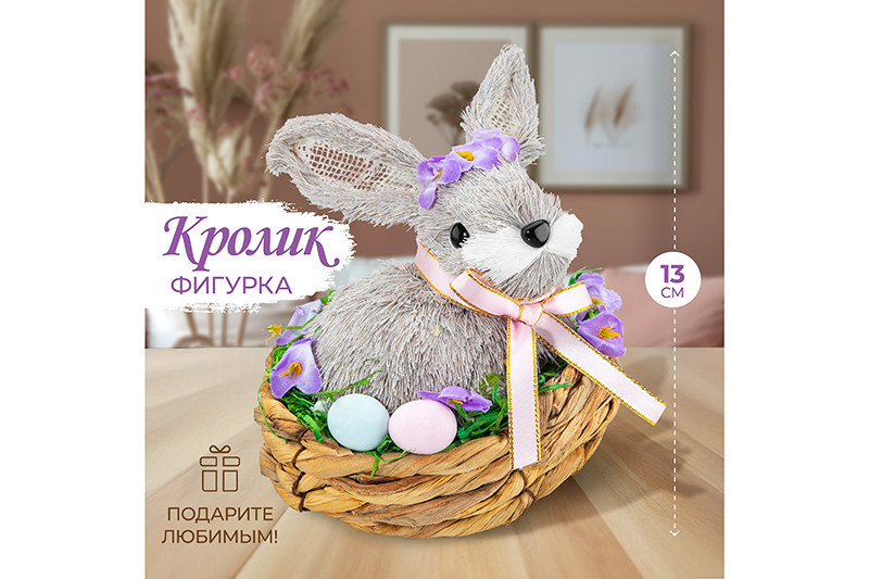 БЫЛО 951 руб! Пасхальное украшение 13*13*13 см "Кролик в гнезде"
