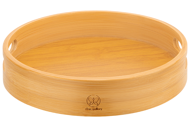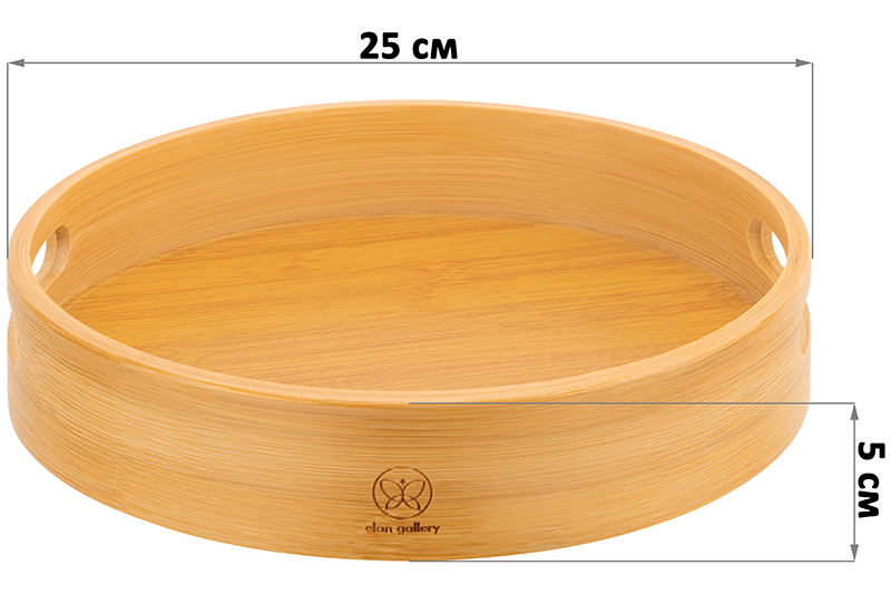 Круглый поднос с ручками Elan Gallery имеет размер 25х25х5 см. Бортики выполнены из натурального бамбука, поддон – из МДФ. Подойдёт для подачи блюд в разные комнаты и для сервировки обеденного стола, а также для украшения интерьера декоративными композициями. В спальне на подносе можно хранить косметику или журналы, поставив его на стол. По краям имеет две ручки, за счёт чего удобно использовать для переноса посуды – тарелок, кружек, чайников, стаканов, кувшинов. Переносной органайзер поможет в подаче шашлыка, закусок, сыра, выпечки, фруктов и вина. Устройте завтрак в постель, проведите встречу с друзьями, уютный вечер на веранде или чайную церемонию. Деревянный поднос отлично послужит в качестве подставки для декора. Создавайте красивые декоративные композиции со свечами, цветами и интерьерными аксессуарами. Многофункциональный поднос послужит для организации хранения. Разместите на кухне чай, кофе, специи и различную кухонную утварь. Используйте в спальне для парфюмерии и косметических принадлежностей, в прихожей для разных мелочей и прочих вещей. Не замачивать, не использовать в микроволновой печи и посудомоечной машине. Не использовать в качестве подставки для раскалённых сковород, кастрюль, противней. Хранить в помещении с нормальным уровнем влажности вдали от нагревательных приборов. Стильный сервировочный поднос сможет стать удобным дополнением вашего дома и приятным подарком для ваших родных и близких!