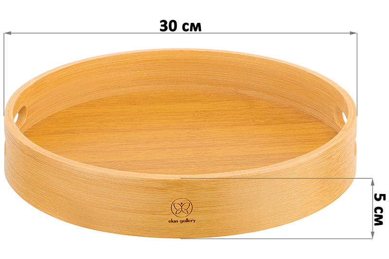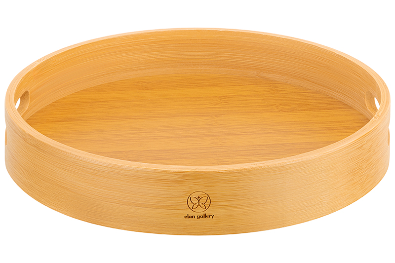 Круглый поднос с ручками Elan Gallery имеет размер 30х30х5 см. Бортики выполнены из натурального бамбука, поддон – из МДФ. Подойдёт для подачи блюд в разные комнаты и для сервировки обеденного стола, а также для украшения интерьера декоративными композициями. В спальне на подносе можно хранить косметику или журналы, поставив его на стол. По краям имеет две ручки, за счёт чего удобно использовать для переноса посуды – тарелок, кружек, чайников, стаканов, кувшинов. Переносной органайзер поможет в подаче шашлыка, закусок, сыра, выпечки, фруктов и вина. Устройте завтрак в постель, проведите встречу с друзьями, уютный вечер на веранде или чайную церемонию. Деревянный поднос отлично послужит в качестве подставки для декора. Создавайте красивые декоративные композиции со свечами, цветами и интерьерными аксессуарами. Многофункциональный поднос послужит для организации хранения. Разместите на кухне чай, кофе, специи и различную кухонную утварь. Используйте в спальне для парфюмерии и косметических принадлежностей, в прихожей для разных мелочей и прочих вещей. Не замачивать, не использовать в микроволновой печи и посудомоечной машине. Не использовать в качестве подставки для раскалённых сковород, кастрюль, противней. Хранить в помещении с нормальным уровнем влажности вдали от нагревательных приборов. Стильный сервировочный поднос сможет стать удобным дополнением вашего дома и приятным подарком для ваших родных и близких!