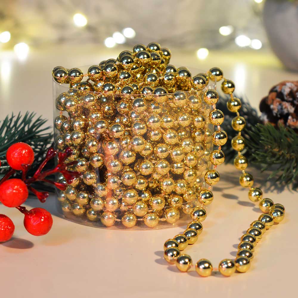 Цепь новогодняя 5м Шарик d0,6см, цвет золото