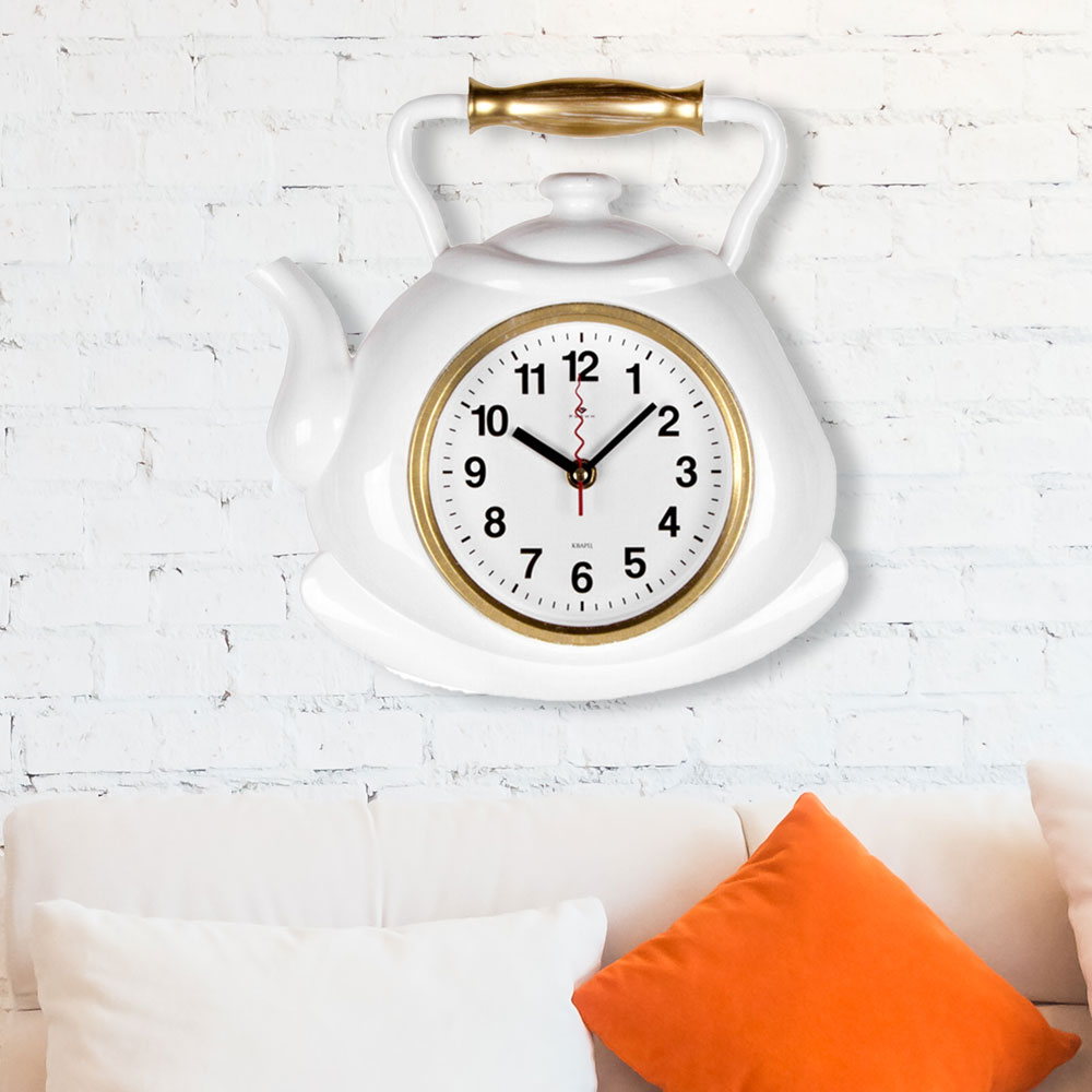 Часы настенные "Чайник" 27*28,5см, корпус белый с золотом