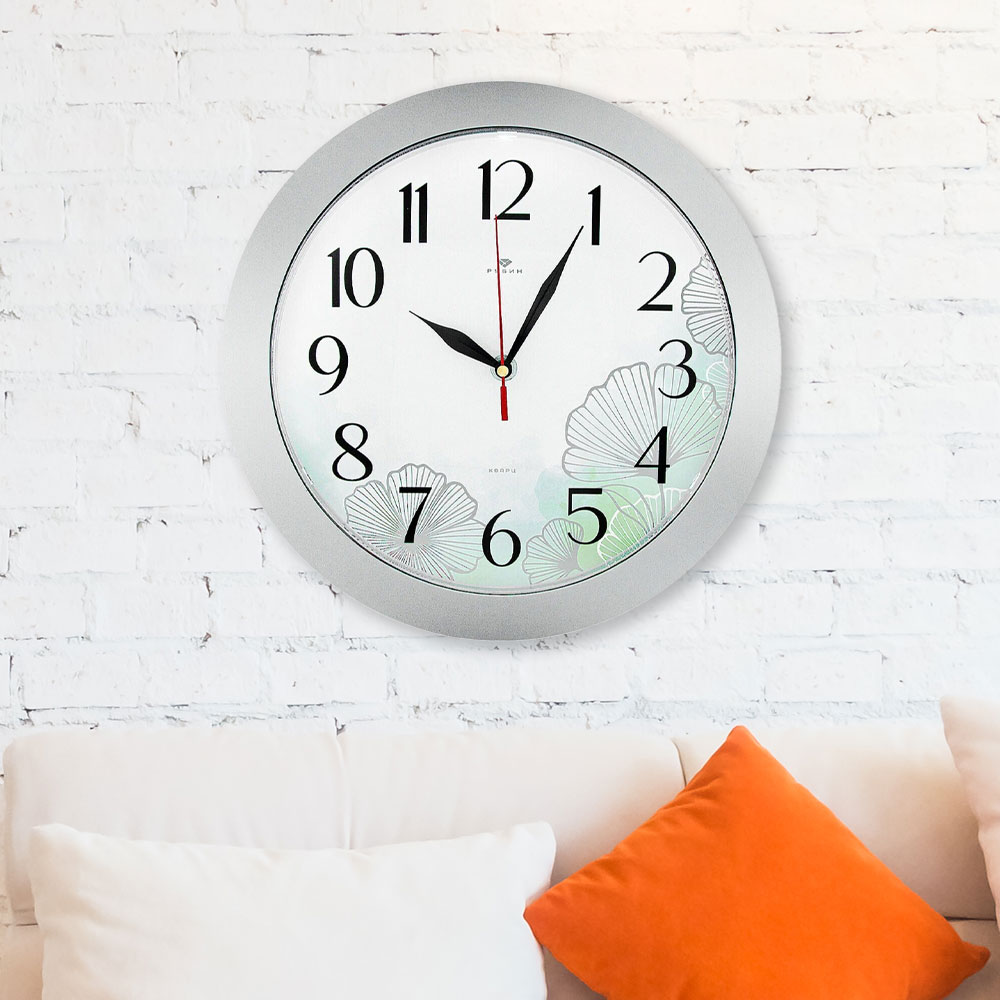 Часы настенные круглые d31см "Флора", корпус серебряный