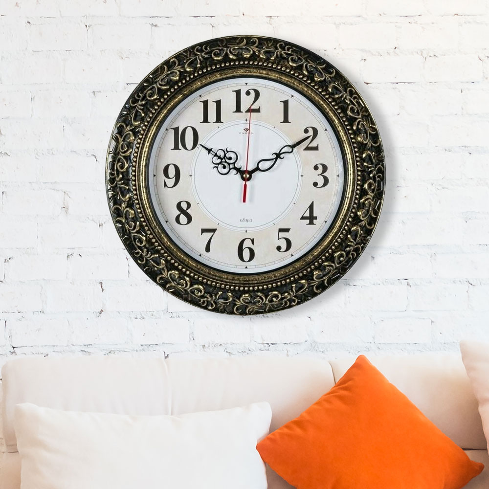 Часы настенные круглые d35см "Классика", корпус черный с золотом