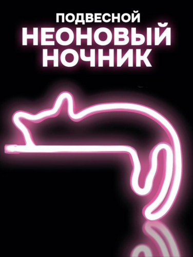 Неоновый подвесной ночник «Cute cat is sleeping», USB, розовое свечение (27,5*20 см)