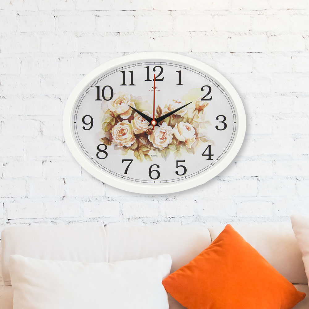 Часы настенные овальные 22,5*29см "Цветы, пастель", корпус белый