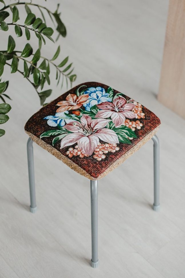 Сидушка на табурет квадратная 32х32 коричневый/лилии