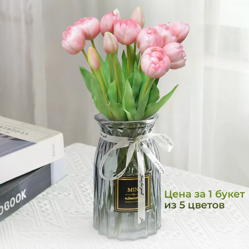 Цветы искусственные Букет 5шт, силикон, цвет розовый
