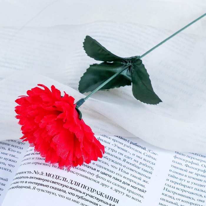 * Реалистичная текстура: Материал цветка точно имитирует естественные линии и форму лепестков гвоздики. Стебель из пластика обеспечивает устойчивость и сохраняет заданную форму.
