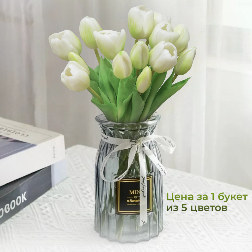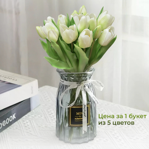 Цветы искусственные Тюльпаны букет 5шт, силикон, цвет белый 600393