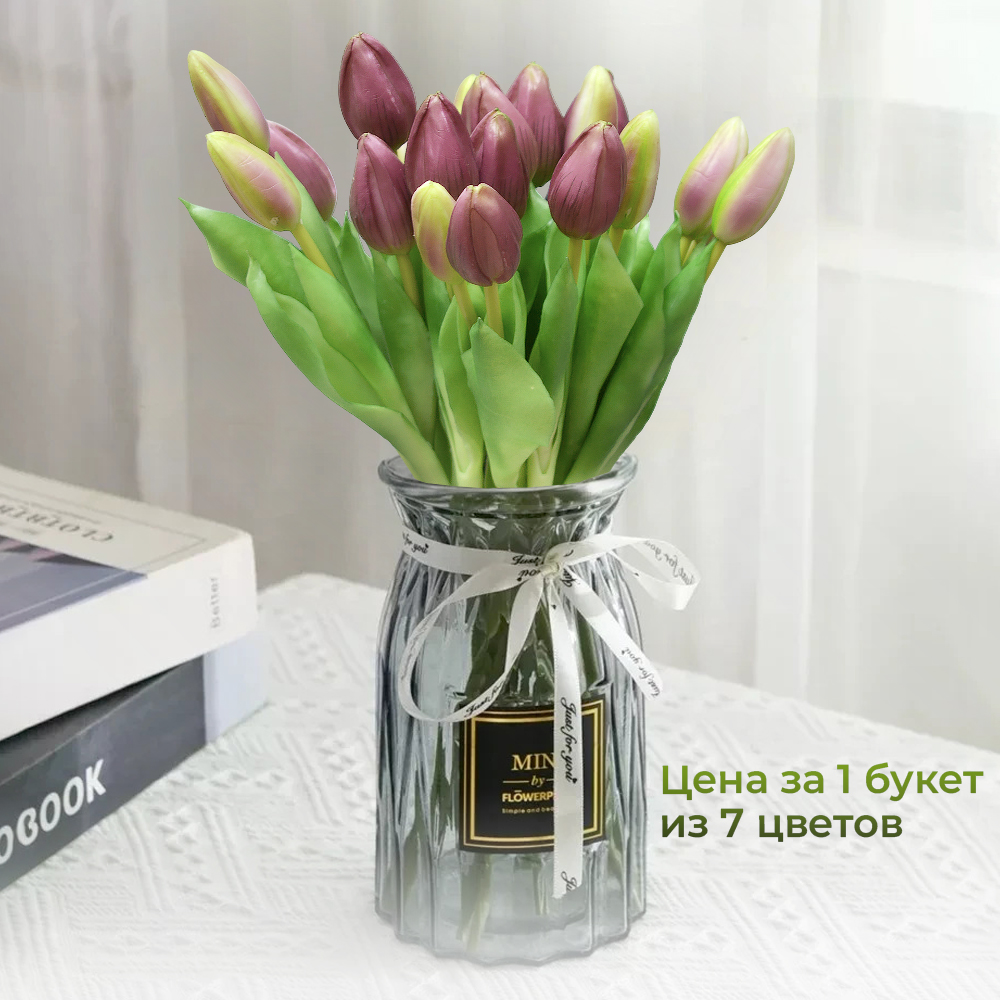 Цветы искусственные Тюльпаны букет 7шт, силикон, цвет розовый 600389