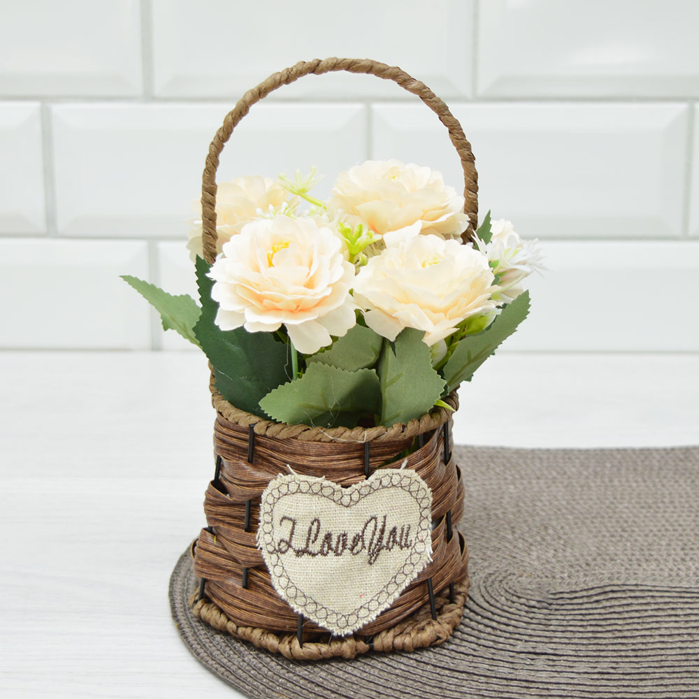 Цветы искусственные в кашпо, бум. жгут, метал., п/э
