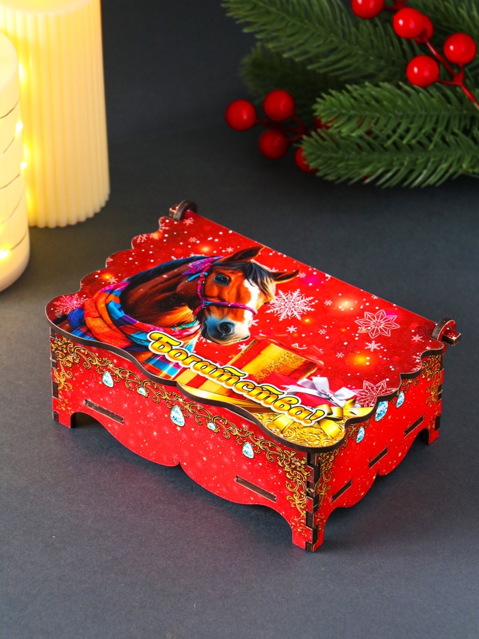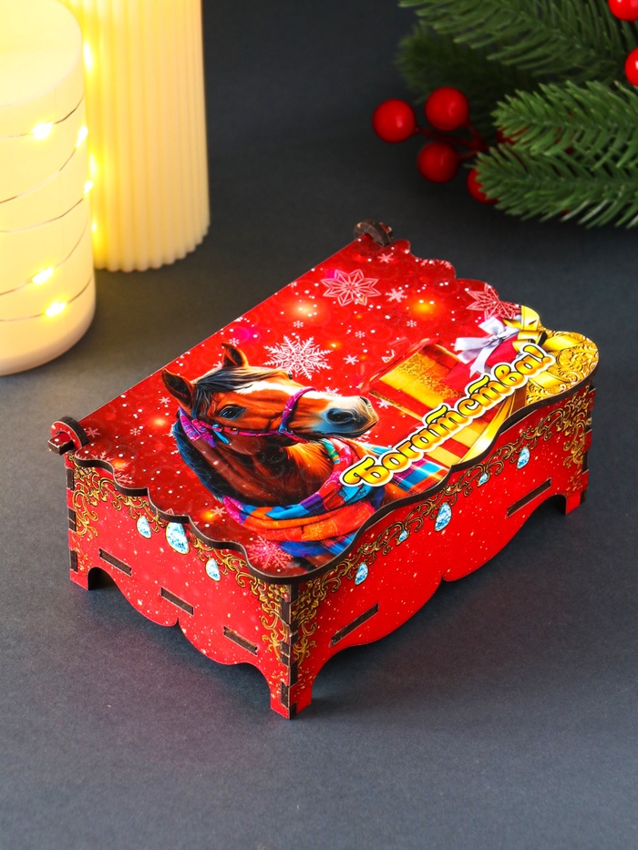 Эта новогодняя шкатулка с изображением лошади — не просто место для хранения, а настоящий талисман, притягивающий удачу и богатство в следующем году. Она станет особым подарком для тех, кто ценит традиции и верит в магию символов. Каждый раз, открывая её, вы будете чувствовать праздничное настроение.