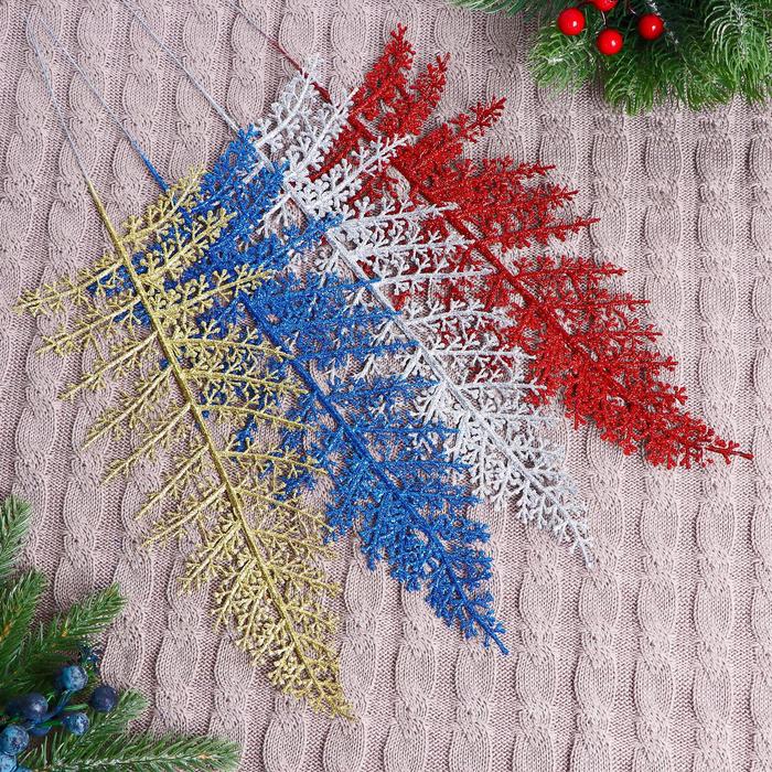 * Искрящийся папоротник для праздника: Ветка повторяет изящную форму настоящего папоротника, но покрыта мерцающими блёстками. Такой декор выглядит нарядно и самодостаточно, он вносит в интерьер ноту зимней сказки без лишней пестроты.