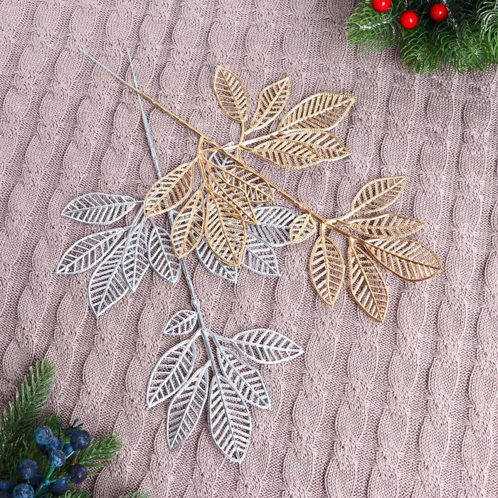Декор блеск «Веточка лиственного дерева», 20×40 см, МИКС (золото, серебро)